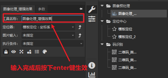 算法工具的名称应避免如"直线定位""直线定位_2""直线定位_3"这种意义不明的,其名称应该能够说明其存在的意义,如"直线定位_预定位""形态学_闭_去除干扰",这在task配置过程中选择参数时也非常有帮助。比较统一干净的命名,还可以方便后期批量替换工具名称。